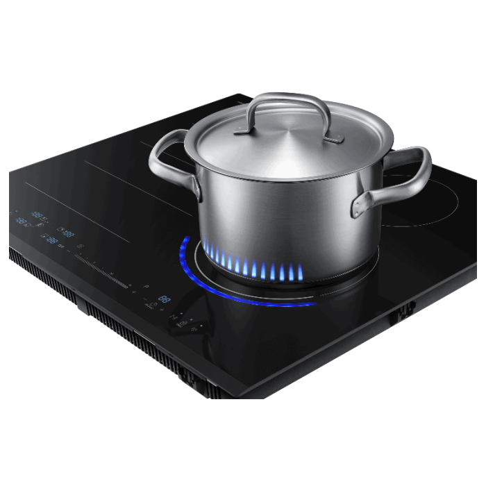 - Virtual Flame Technology™: светодиодная подсветка визуализирует уровень нагрева, имитируя пламя газовой плиты.